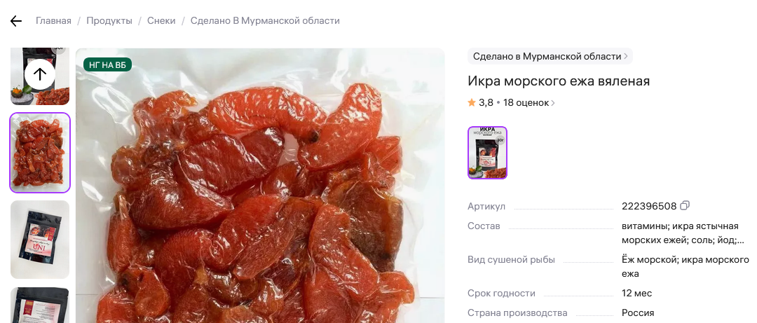 «Сделано в Мурманске»: вяленую икру морского ежа предлагают купить на маркетплейсе