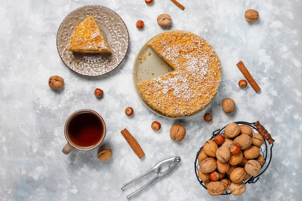 Для начинки пирога используют орехи и сухофрукты