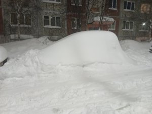 «Взываем к совести»: в Апатитах брошенный с ноября «подснежник» заблокировал тротуар и работу спецтехники