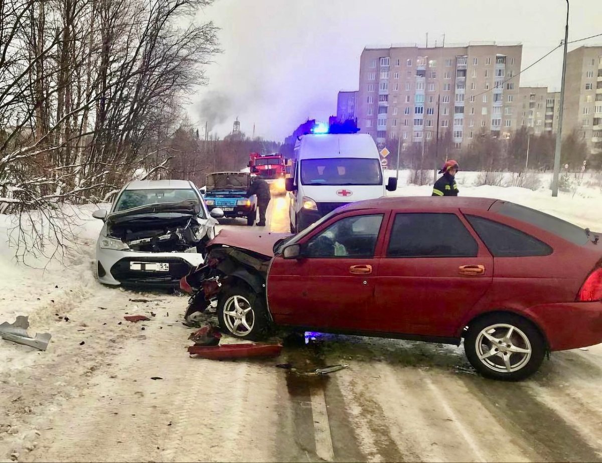 В Оленегорске лоб в лоб столкнулись легковушки, госпитализированы двое