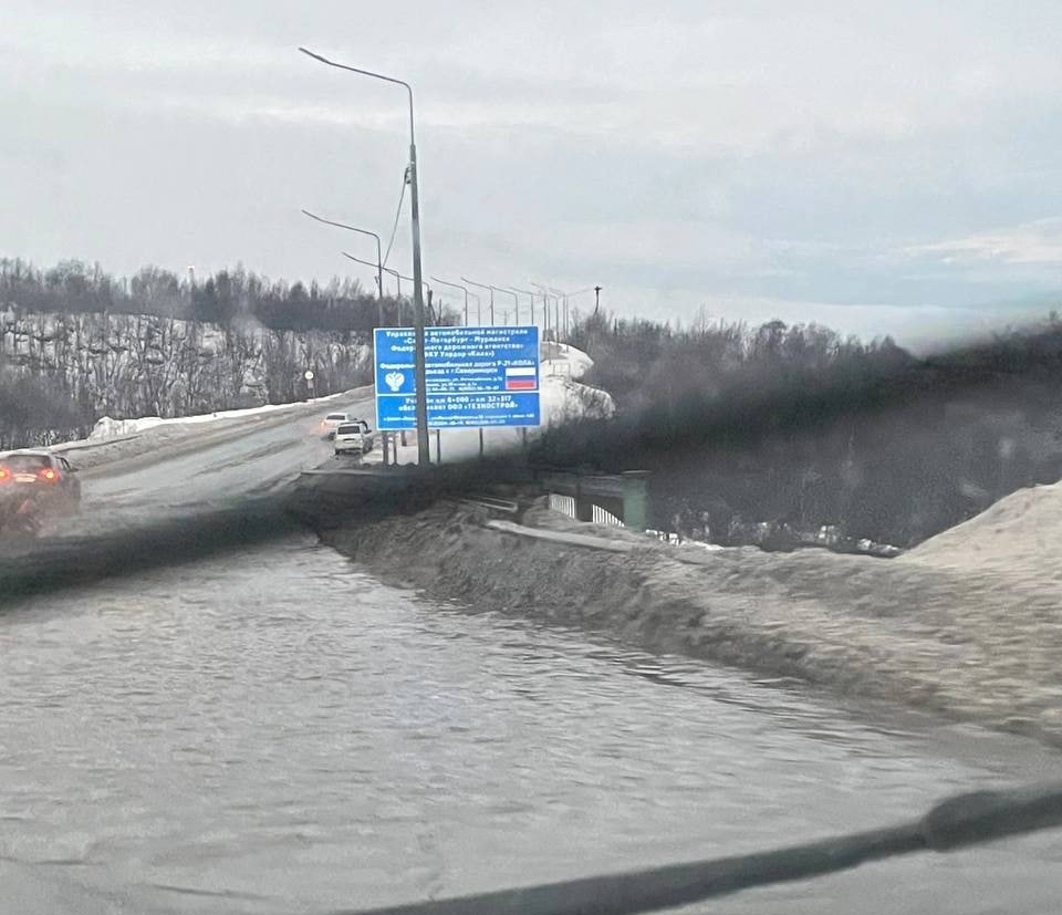 Из-за «озера» на выезде в Североморск, которое появилось в результате январских дождей и оттепели, в соцсетях разгорелась нешуточная дискуссия.