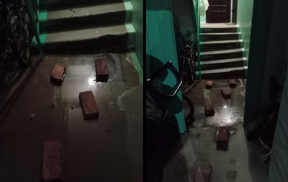 — Уже достаточно долго была лужа из канализации в подъезде, потом она превратилась в болотце. За кирпичи конечно спасибо, удобнее стало, но это не решение! Сейчас похолодает и что? Уровень уже ниже стал, но Вам не кажется, что нужно что-то с этим делать? Людям живущим в этом доме это вот вообще неудобно! — написали северяне.