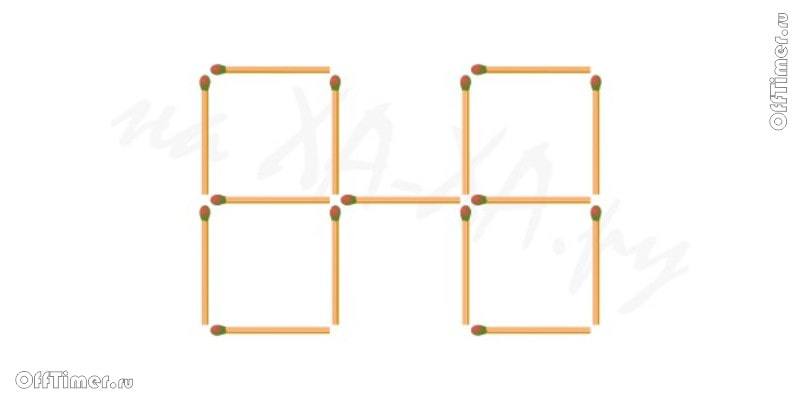 Мы имеем квадрат, в котором нужно перенеси 2 спички, чтобы получилось 5 одинаковых квадратов.
