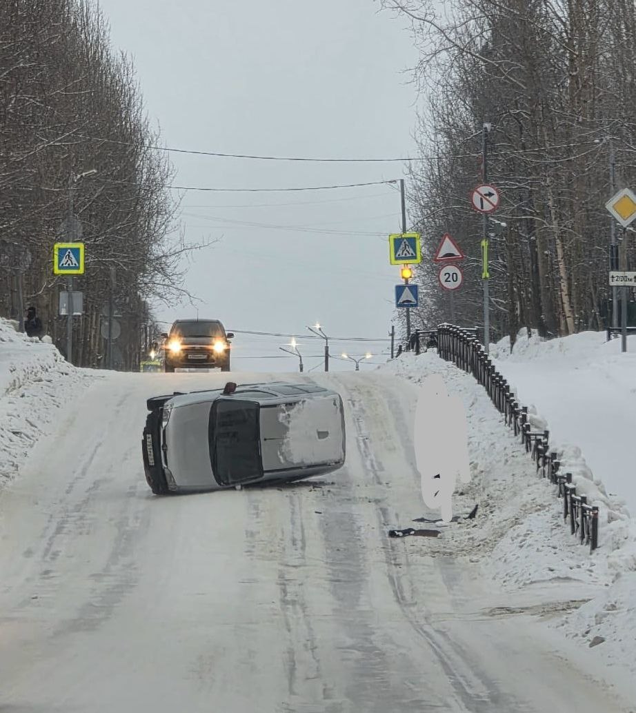 В Мончегорске иномарка перевернулась и перегородила дорогу