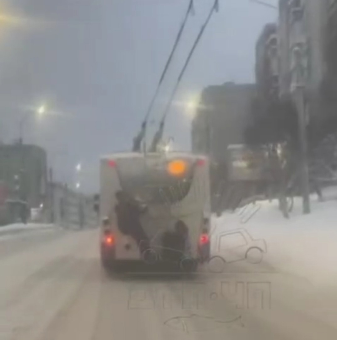 В Мурманске сотрудники ГАИ установили подростков, которые в середине января залезли на лестницу, установленную в задней части троллейбуса и таким образом ехали. Это произошло на одной из улиц центра города.