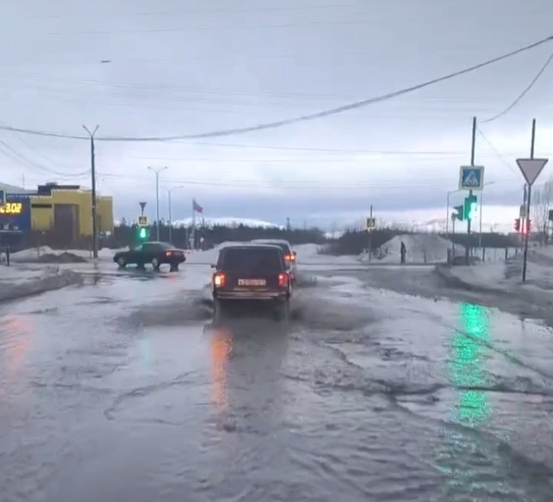 «Нормально так поплыли»: после растаявшего снега в Мончегорске появилось «озеро»