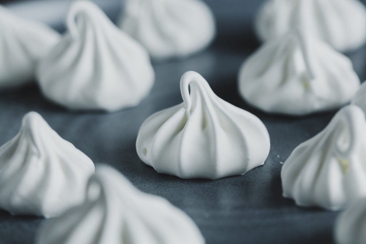 Для придания десерту желтоватого цвета добавляем к смеси немного красителя. Как только масса станет пышной переложите в кулинарный мешок и отсадите на противень.