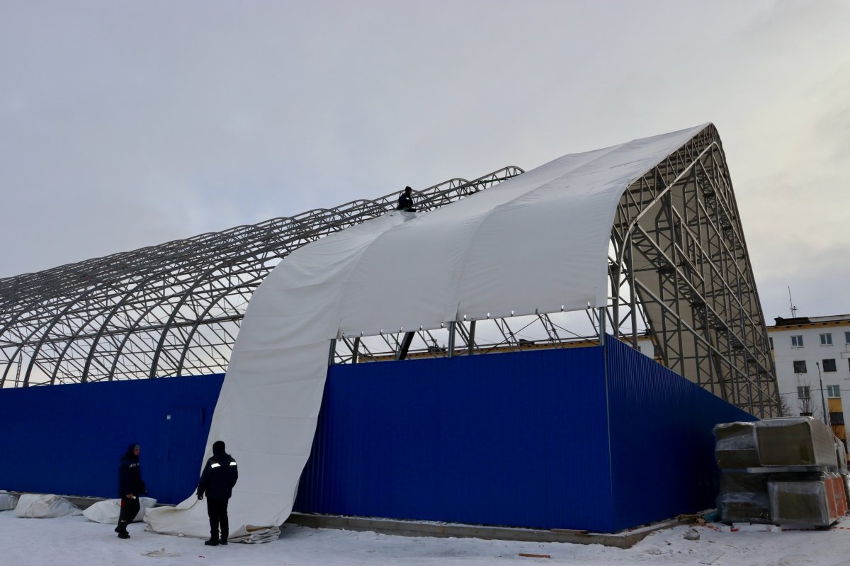 В Никеле приступили к монтажу тентового полотна на хоккейном корте. Об этом сообщили в администрации Печенгского округа.