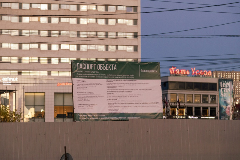 В Мурманске продлили запрет пешеходам ходить по тротуарам возле реконструируемой площади Пять углов. Об этом говорится в соответствующем постановлении № 908 администрации областного центра.