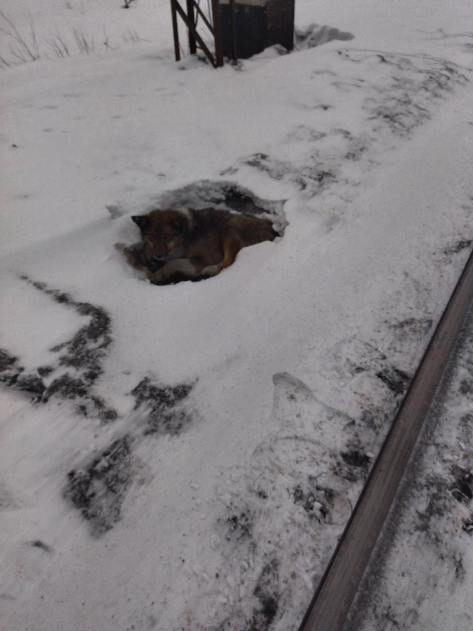 История спасения: в Кандалакше сбитая поездом собака трое суток пролежала в снегу