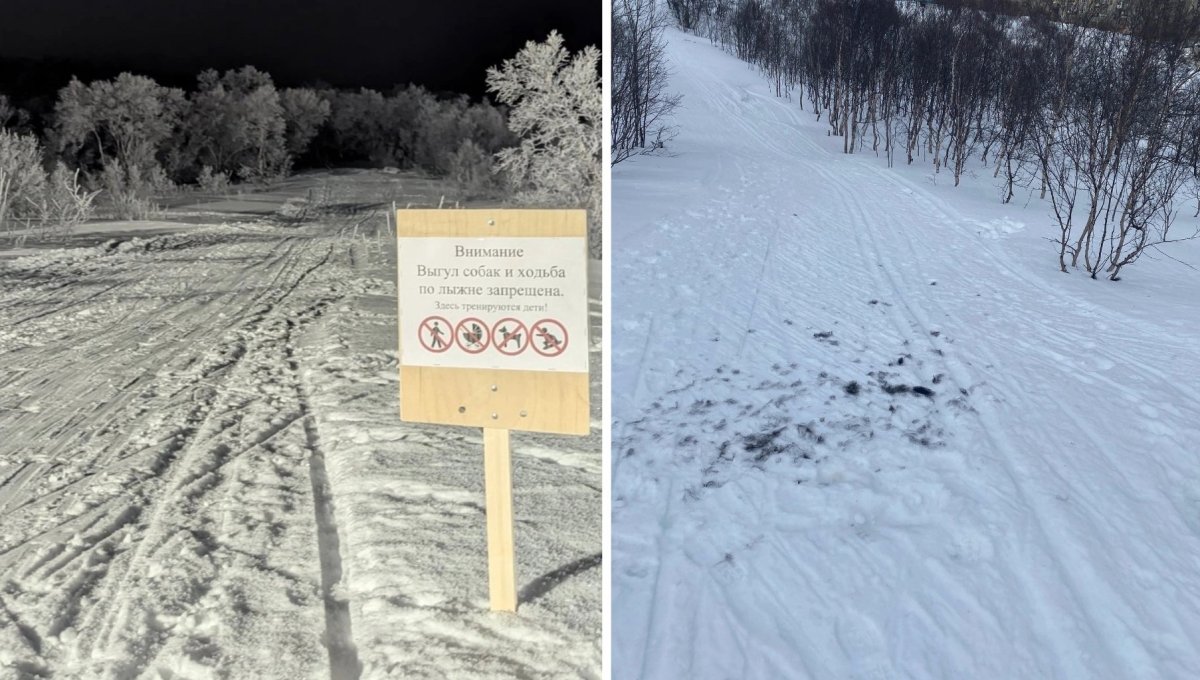Собачники повадились выгуливать питомцев на лыжной трассе в Снежногорске, пишет паблик «The ZATO I Александровск».