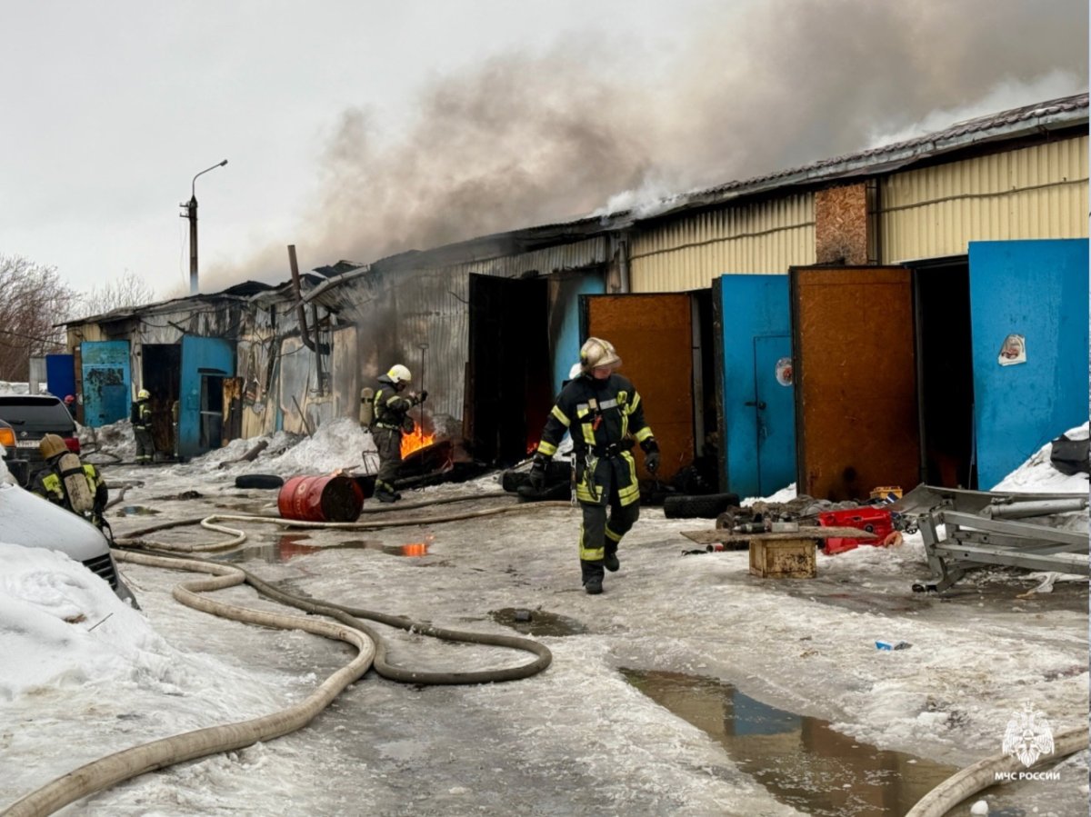 Тушение осложнялось наличием пропановых баллонов в боксе. По предварительной информации, площадь пожара составило 300 квадратных метров.