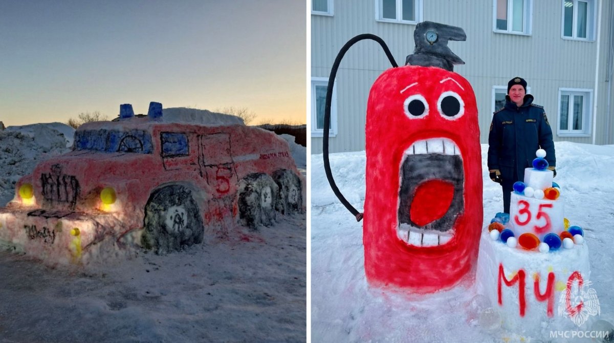 Пожарные ЗАТО Мурманской области проводили зиму снежными скульптурами