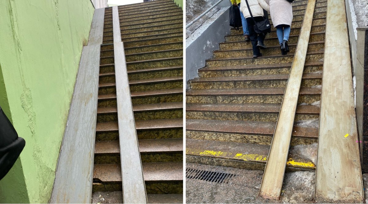 Лестницы с пандусами на железнодорожном вокзале Мурманска вызвали недоумение гостей столицы Заполярья. Так, жительница Подмосковья, мурманчанка в прошлом Елена Соколова поинтересовалась в соцсетях, когда же перроны станут доступными для всех.