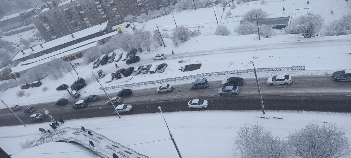 В Мурманске ночью и утром шел мокрый снег. Из-за снежной каши осложнилась обстановка на дорогах. Так, авария произошла на Северном проезде. Там столкнулись несколько автомобилей.