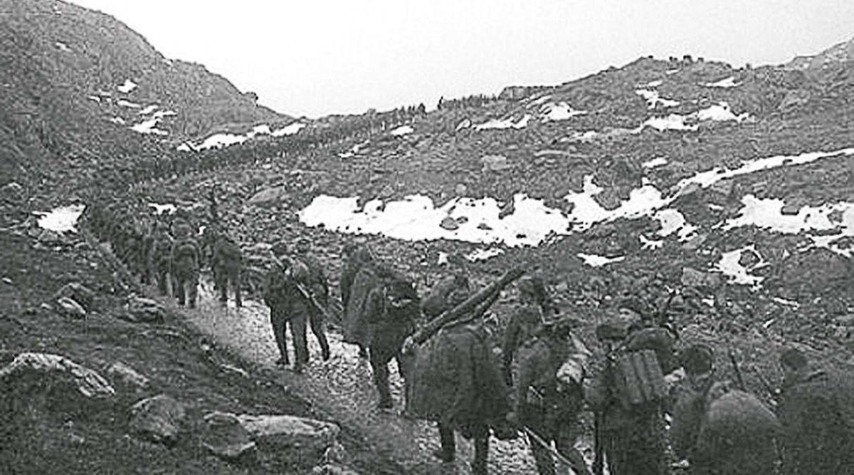 — В войну эти черные скалы были изрублены взрывами мин и снарядов, усыпаны острыми осколками металла и камней, кое-где — снежные заносы и обледенение. В валенках тут делать нечего — не устоишь. В ботинках или сапогах с подковками еще можно передвигаться, но надо видеть, куда ставишь ногу. А под прицелом снайпера смотреть некогда, взбираешься максимально быстро. На плечах два лотка с минами или ящик с гранатами, мешок сухарей, канистра со спиртом — все по 20 килограммов. А ветер 7–10 баллов — он там постоянный, часто шквалистый, валит с ног. И еще слепящий глаза мокрый снег, или секущие в кровь острые льдинки, или снежный смерч, сбивающий с пути, — рассказывал Георгий Возлинский.