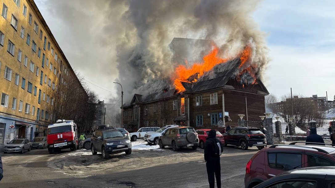 В Мурманске на улице Сполохи, 6 горит двухэтажное деревянное здание. Об этом рассказали очевидцы в социальных сетях, сняв происходящее на камеру. Видео опубликовано в интернете и на кадрах видно, что пламенем охвачена часть крыши здания.