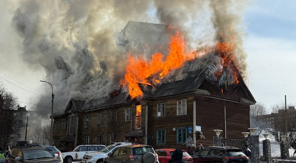 В региональном управлении МЧС рассказали подробности пожара на Сполохах, 6 в Мурманске. Напомним, утром загорелась «деревяшка». В данный момент горит кровля по всей площади.