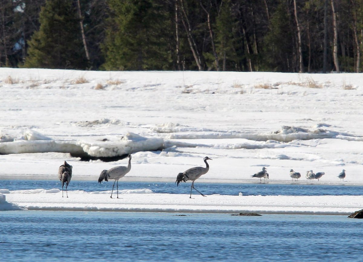 На острова Северного архипелага Кандалакшского заповедника вернулись с мест зимовки серые журавли. Эти птицы занесены в Красную книгу Мурманской области. По информации очевидцев, уже несколько дней слышны клики журавлей и в районе Великоостровского участка заповедника.