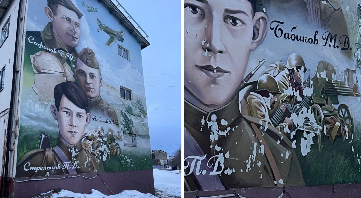 В Никеле разрушается мурал, посвященный героям Великой Отечественной войны