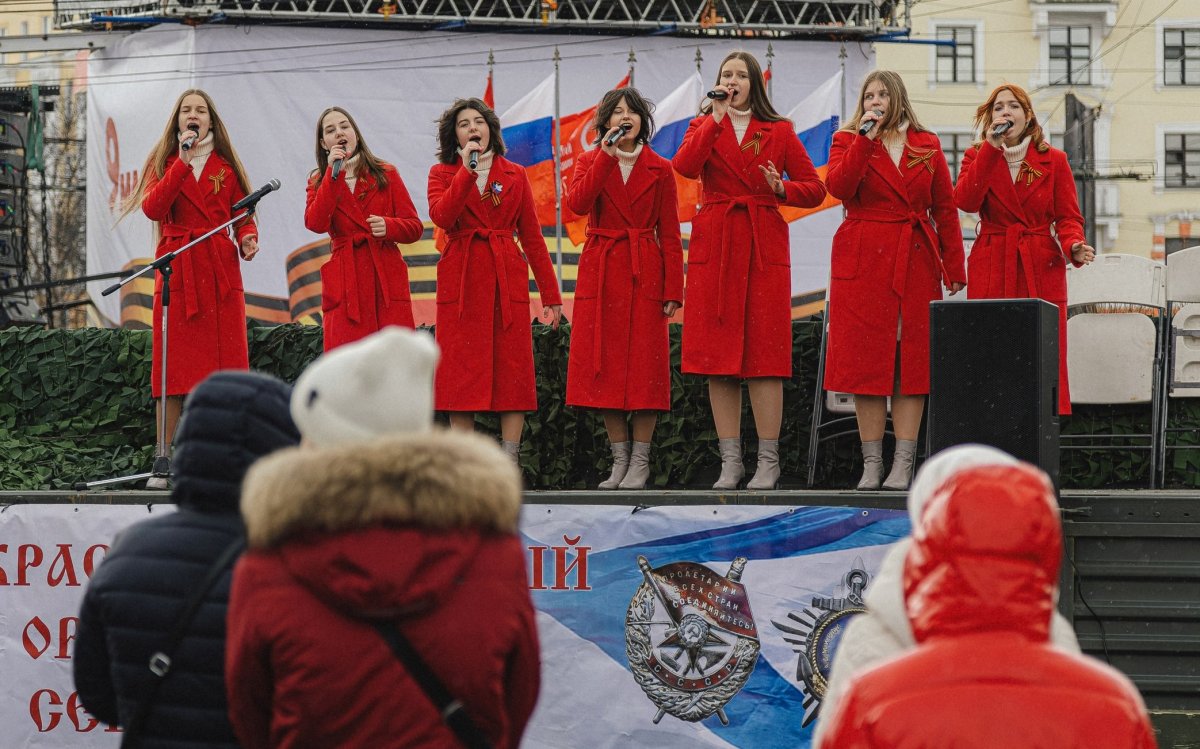 Так, в 11:00 в сквере у ДК им. С. М. Кирова учащиеся образовательных учреждений города начался показ театрализованное представление «Сквер Победы». Здесь же пройдут выступления военного оркестра и коллектива Щербакофф-бэнд. Будет работать полевая кухня, а на улице Пушкинской состоится выставка военной техники.