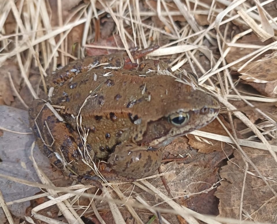 В Мурманской области «оттаяли» лягушки, то есть вышли из зимнего анабиоза. Такая земноводная «царевна» встретилась старшему инспектору Великоостровской инспекции нашего заповедника Александру Зятикову, который и запечатлел ее.