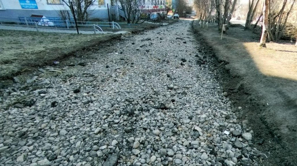 Ранее сообщалось, что жители Мурманска возмутились тем, что асфальт на пешеходной дорожке был снят на всем ее протяжении, а вывороченные бордюры порой с трудом позволяют перейти через дорогу. Кроме того, они обеспокоены судьбой зеленых насаждений.