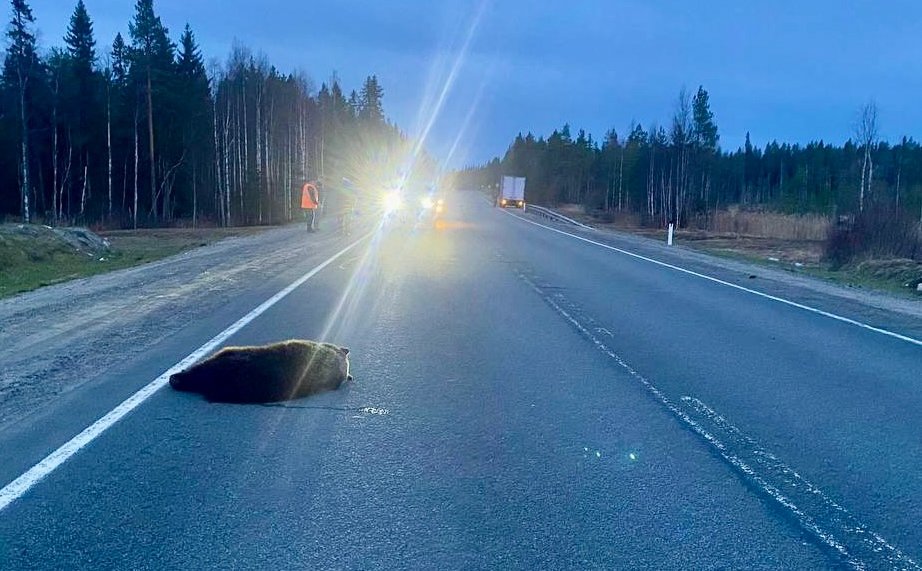 На федеральной трассе Р-21 «Кола» водитель Toyota Land Cruiser сбил выбежавшего на дорогу молодого медведя. Инцидент произошел 20 мая на 625 км трассы в районе Медвежьегорска в Карелии, сообщили в местном ОМВД.