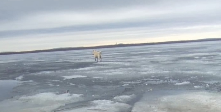 Животное находилось на льду, вдали от берега. При этом лед очень тонкий, во многих местах — полыньи. Информация о собаке была передана сотрудникам экстренного ведомства.