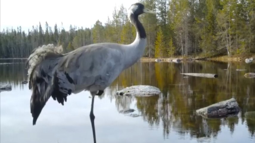 В глухом лесу Кандалакши журавля застали за рыбалкой
