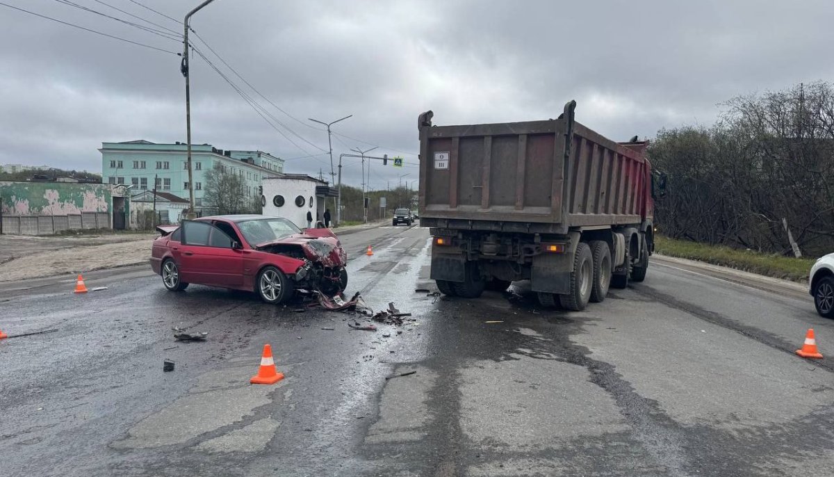 В Североморске грузовик не пропустил BMW — водитель легкового авто в больнице