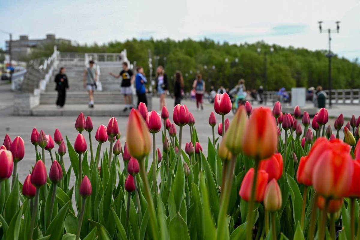На набережной мурманского Семеновского озера — тюльпановый оазис. Недавно там высадили цветы. Они не зимовали на клумбе, как, например, те, что находятся на площади Пять Углов и еще распускаются. Тюльпаны, которые радуют глаз на Семеновском озере, вырастили в теплице.