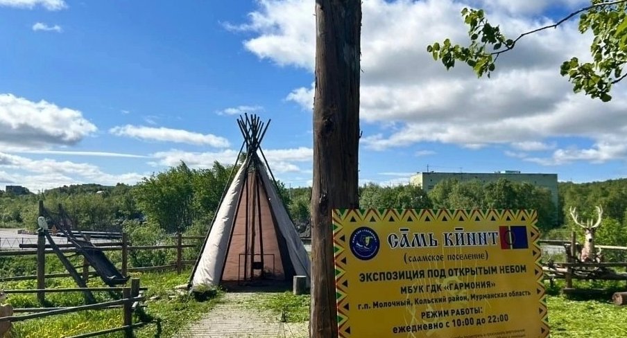 В поселке Молочном Кольского округа на территории местного Дома культуры работает экспозиция под открытым небом «Са̄мь кӣннт» («Саамское поселение»). Об этом сообщили в паблике ДК.