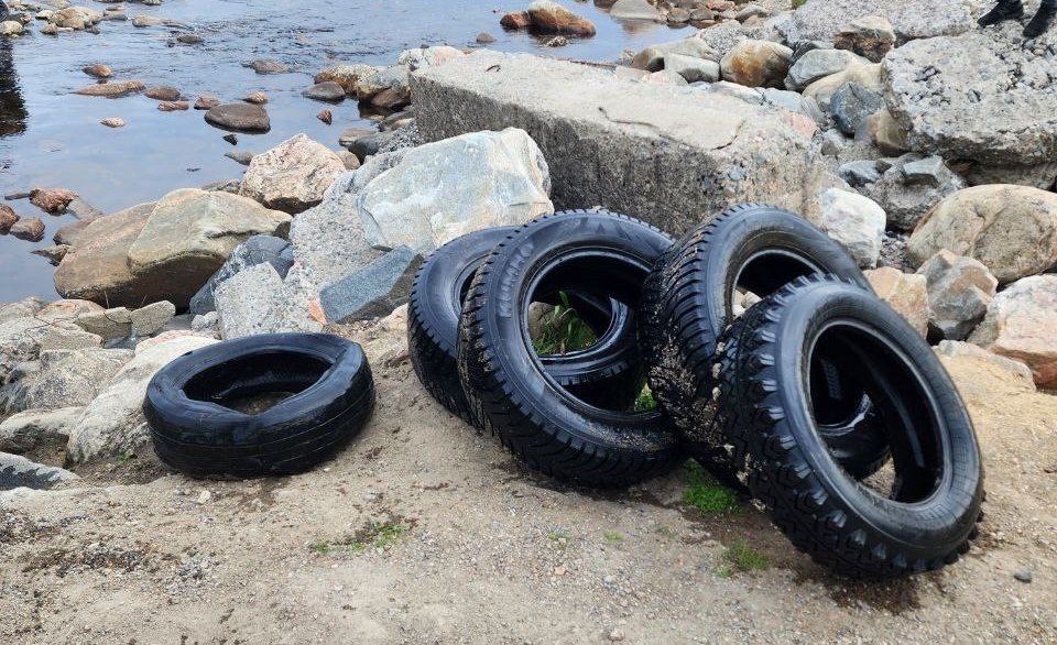 В Кандалакше неизвестные накидали в реку старых покрышек