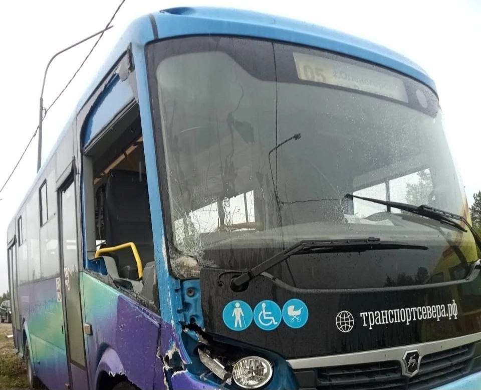 На остановочном комплексе в районе механического завода на улице Мончегорское шоссе рейсовый автобус врезался в опору уличного освещения.