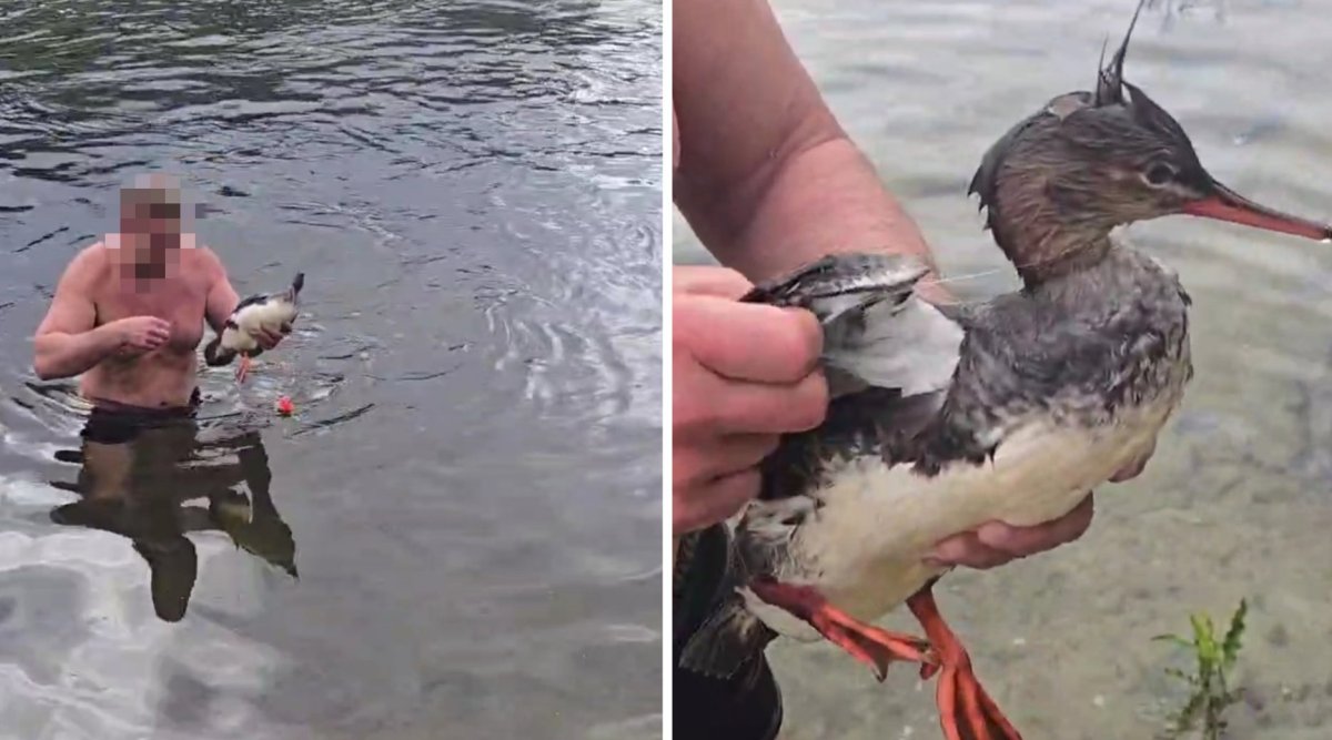 Отмечается, что северянин, благодаря которому удалось спасти попавшую на крючок утку, занимается плаванием и часто видит подобные случаи.