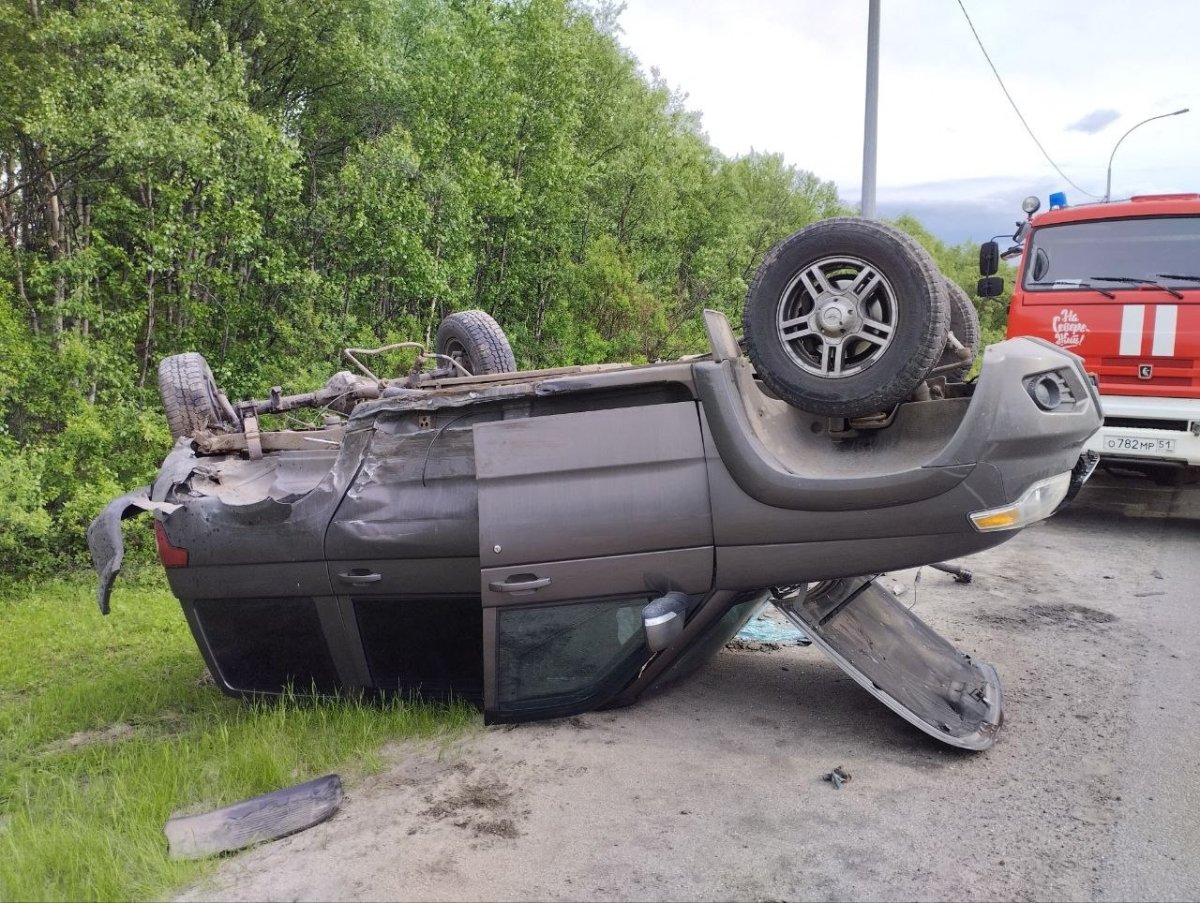 В Кольском округе столкнулись две машины — одна перевернулась, двое человек пострадали