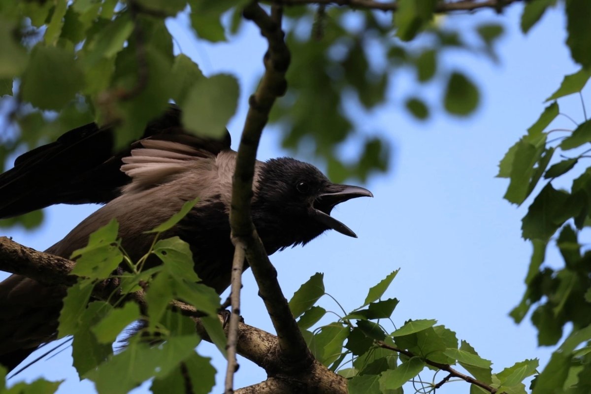 Об этом местные жители рассказали в группе «Атлас птиц» «Вконтакте». Как рассказали эксперты, так агрессивно вороны защищают своих слетков, вылетевших из гнезда.