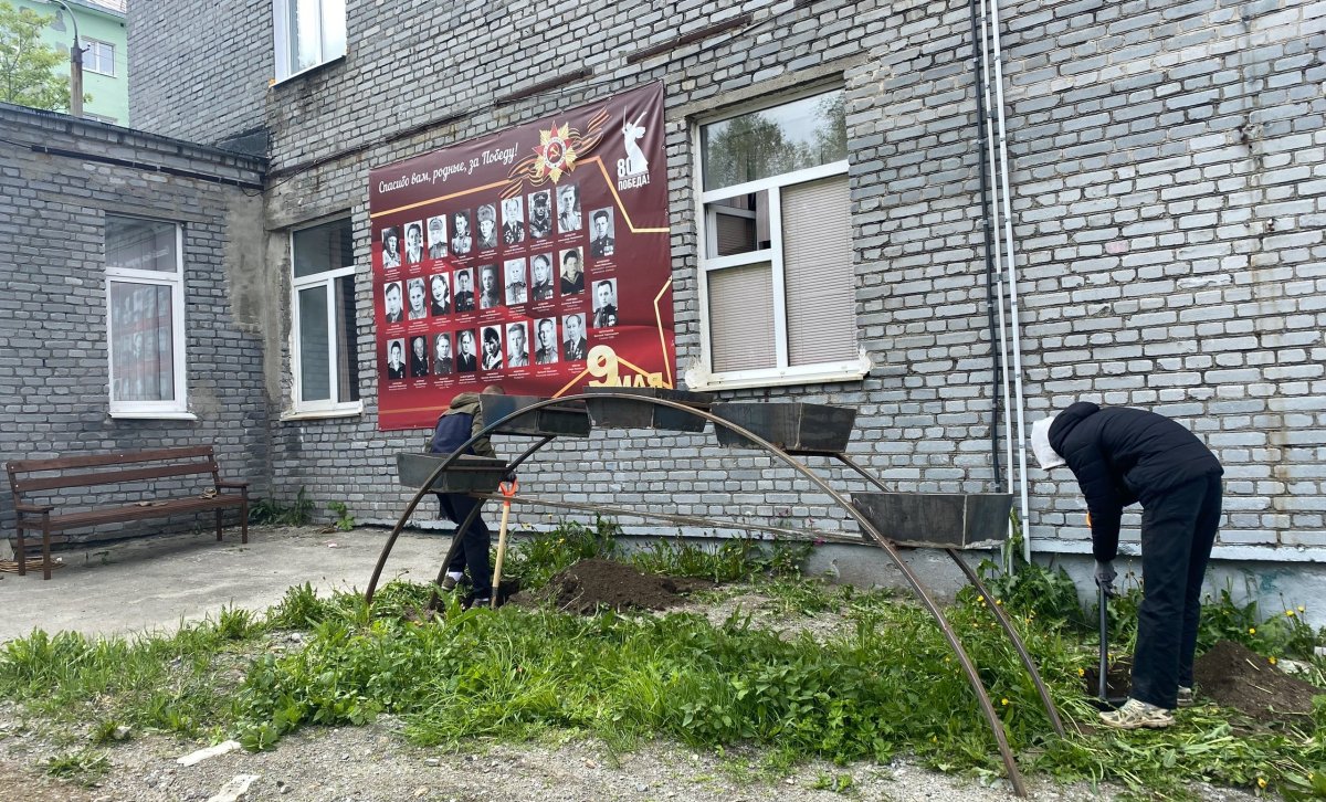Цветник и скамейка: в Кировске благоустраивают территорию у Совета ветеранов