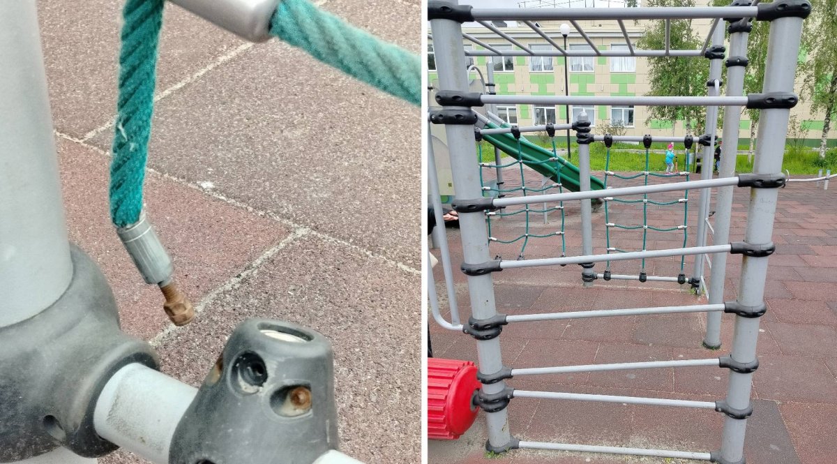 Жители Ковдора обратили внимание на состояние детской площадки в центре города, отметив, что, скорее всего, ее даже не обслуживают. Об этом северяне рассказали в соцсетях, опубликовав фотографии игрового оборудования, где заметны неисправные крепления, смещенные перекладины и торчащие болты.