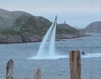 В Териберке на днях туристы заметили необычного спортсмена. Видео попало в соцсеть. В бухте на центральном пляже, неподалеку от берега, мужчина взмывал вверх, парил в воздухе и кувыркался. Это стало возможным, благодаря использованию специального оборудования для флайборда.