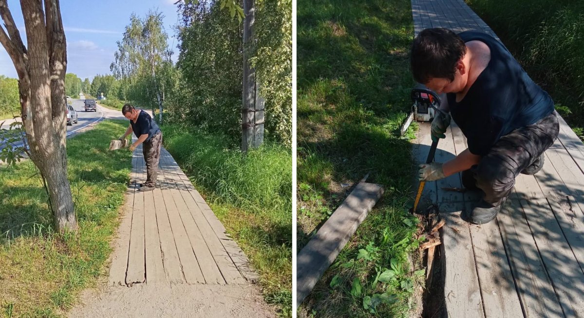 В Умбе обновляют местную достопримечательность — деревянные тротуары