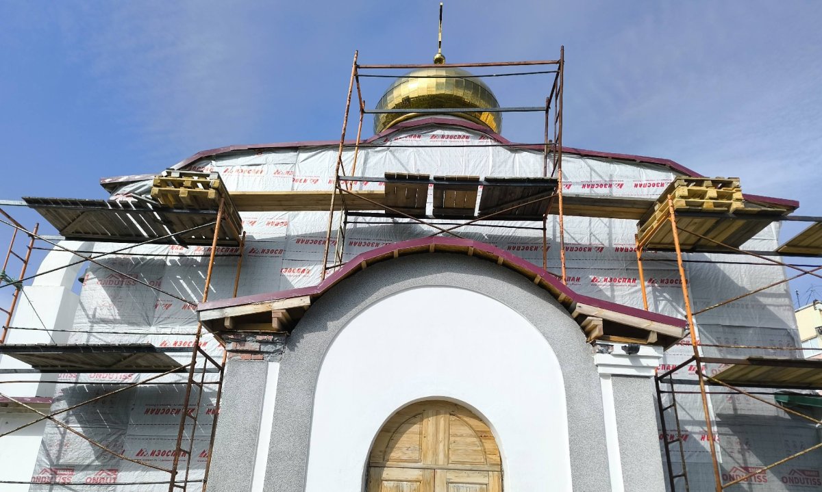 В снежногорском храме Георгия Победоносца идет ремонт — утепляют стены фасада