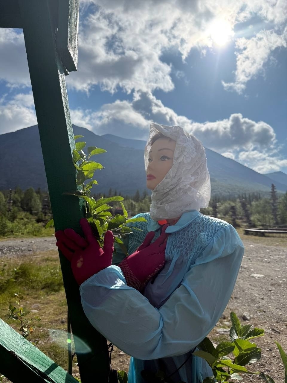 Скорее всего, этот арт-объект смастерили сотрудники пункта. По легенде, девушка пришла рано утром к смотровой вышке, чтобы позвать дозорного домой, но тот не может, пока не убедится, что все туристы вернулись с маршрутов.