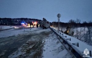 Около Спутника из упавшего бензовоза вылилось 25 тонн АИ-95, возле отворотки на Полярный разбились 5 авто