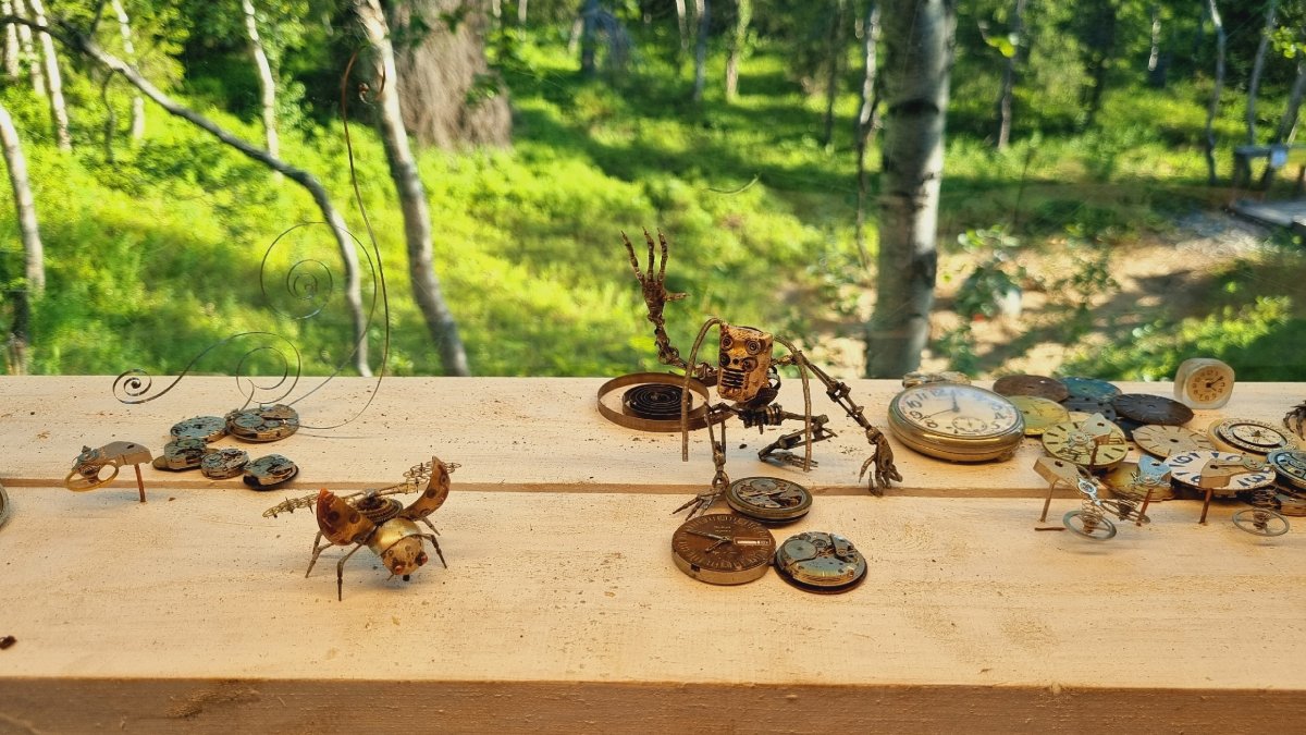 — Эти микрожители изготовлены полностью из деталей часовых механизмов! Интересно, что миниатюры разместились в обрамлении хибинских богатств (аметисты, астрофиллиты). Этот микромир с его сюжетами можно разглядывать долго! Ищите на карте локацию «Видеосфера», — отметили в арт-парке.