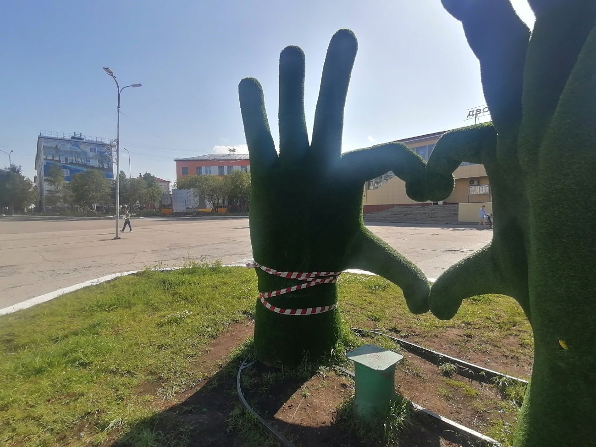 Нынешним летом на центральной площади Заполярного появился новый арт-объект. Он называется «Сердце в руках». Топиарий сделан из искусственного газона в форме двух ладоней, пальцы которых сложены в виде сердца. Как сообщает группа «ЗВ онлайн» «Вконтакте», вандалы на днях повредили арт-объект.