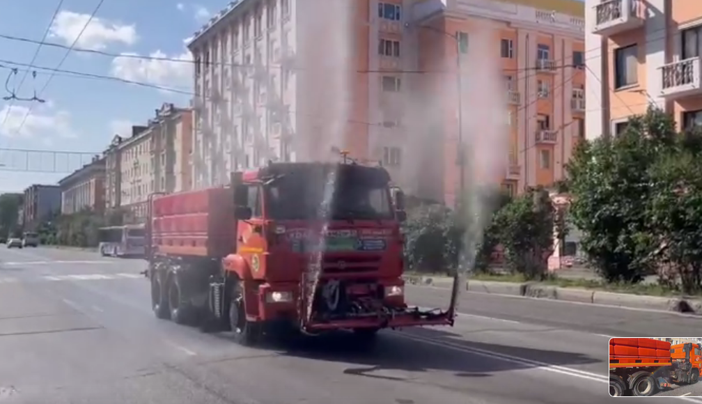 Жители Мурманска заметили, что струи поливомоечных машин, которые ездят по улицам города, направлены не на асфальт, а вверх. Как объяснили в муниципальном Управлении дорожного хозяйства, в жару проходит аэрация воздуха воздушного с помощью специализированной техники.