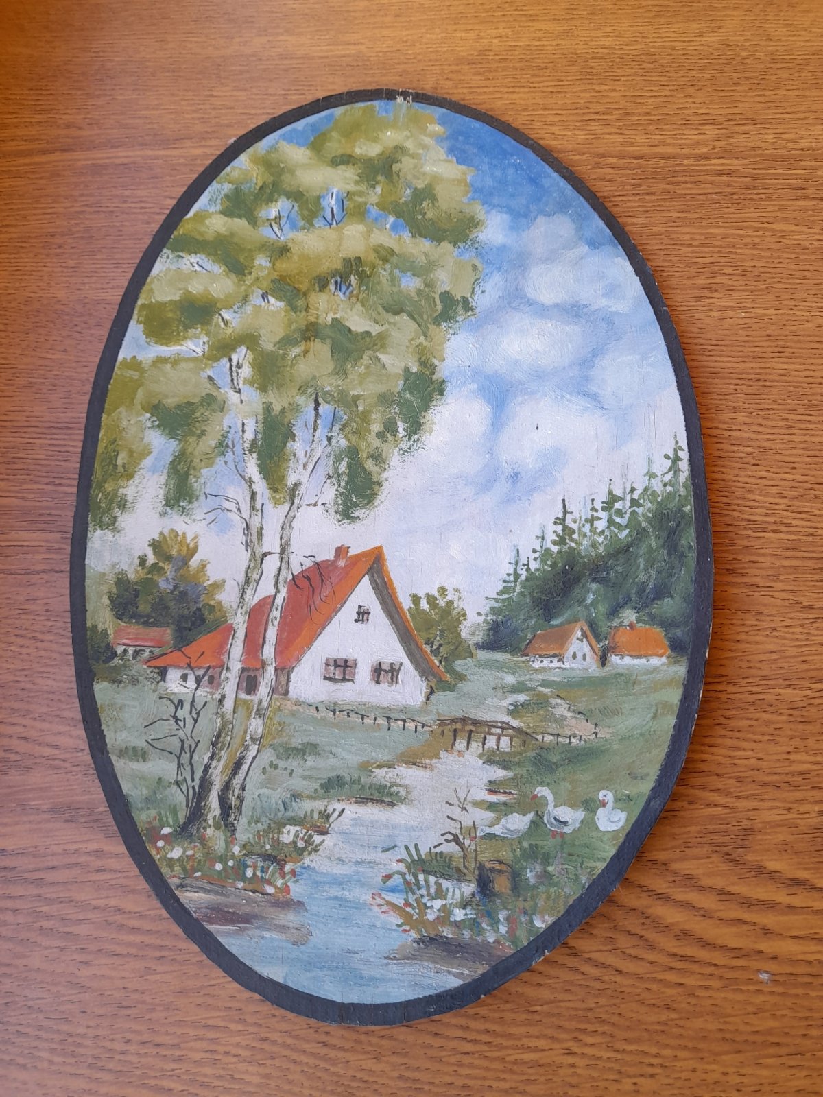 В музей истории Мончегорска обратились местные жители с просьбой определить автора живописной миниатюры. Работа выполнена на небольшом куске дерева масляными красками. Автор изобразил летний погожий деревенский день.