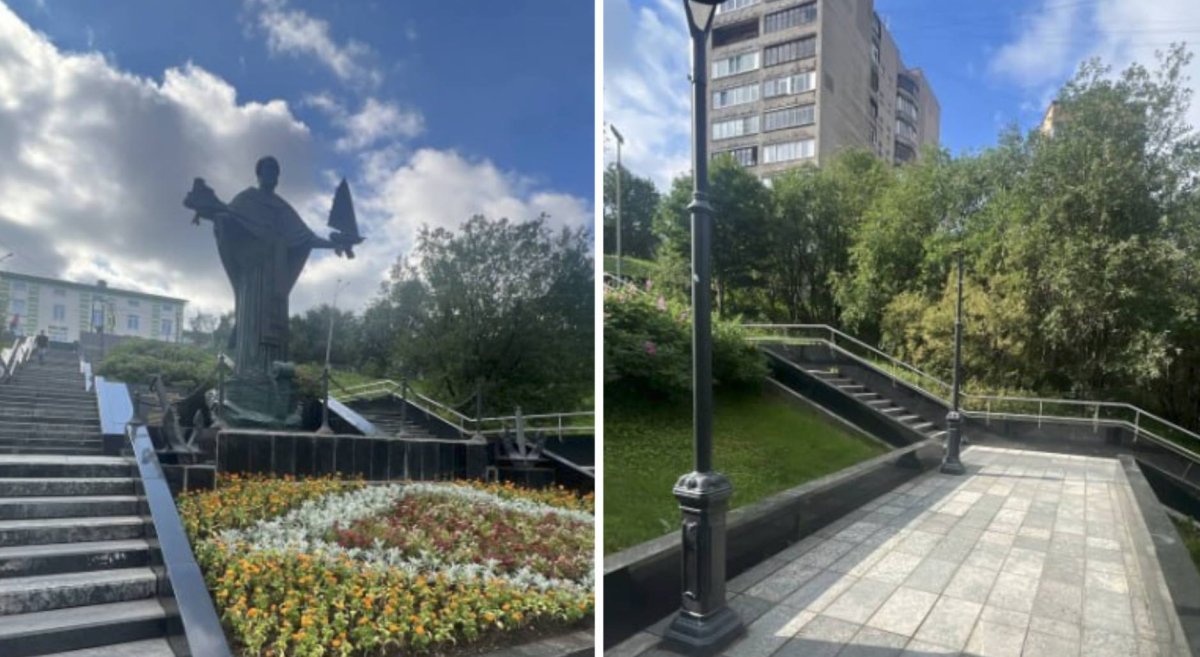 «Ремонт выполнен»: в Мурманске привели в порядок лестницу к памятнику Николаю Чудотворцу